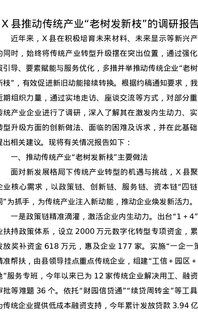 X县推动传统产业“老树发新枝”的调研报告