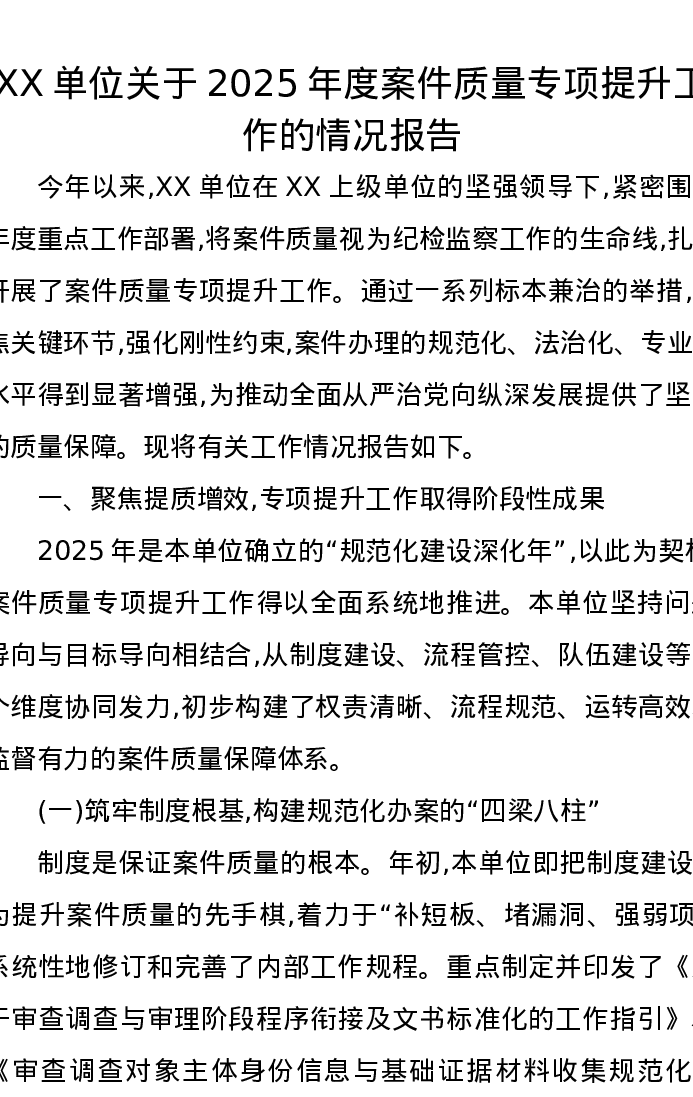XX单位关于2025年度案件质量专项提升工作的情况报告