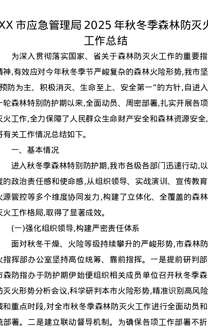 XX市应急管理局2025年秋冬季森林防灭火工作总结