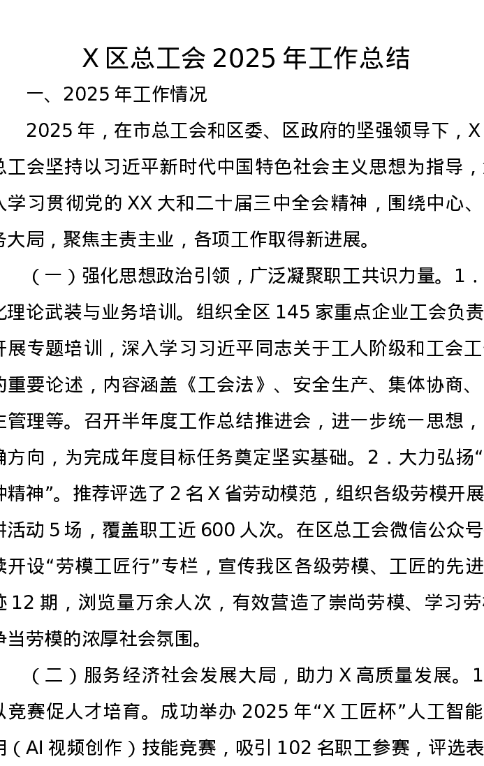 X区总工会2025年工作总结