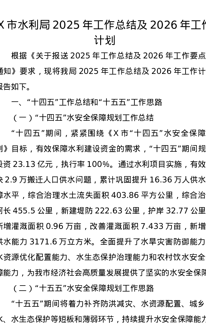 X市水利局2025年工作总结及2026年工作计划
