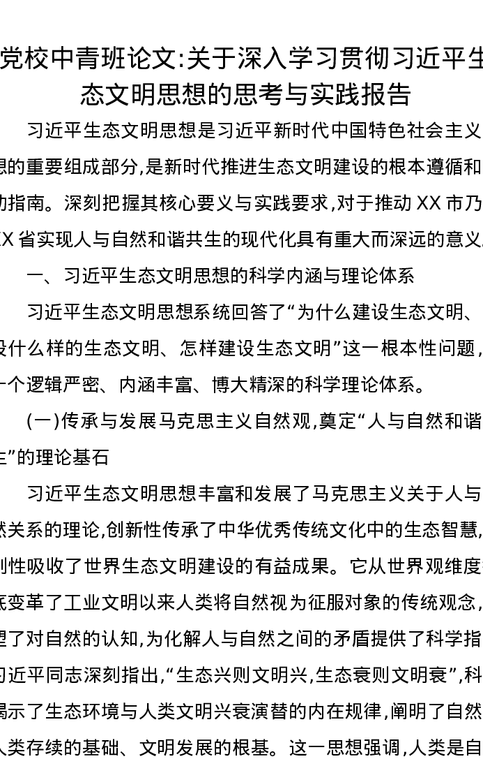 党校中青班论文关于深入学习贯彻习近平生态文明思想的思考与实践报告