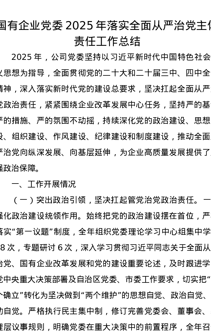 国有企业党委2025年落实全面从严治党主体责任工作总结