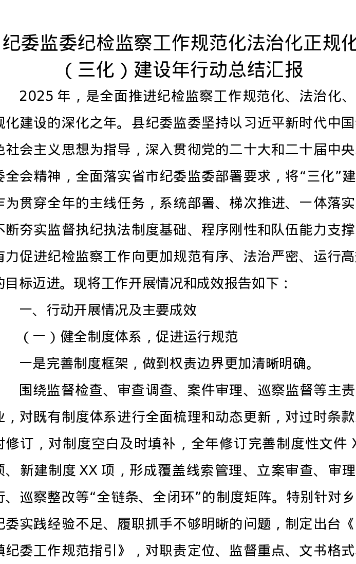 纪委监委纪检监察工作规范化法治化正规化(三化)建设年行动总结汇报