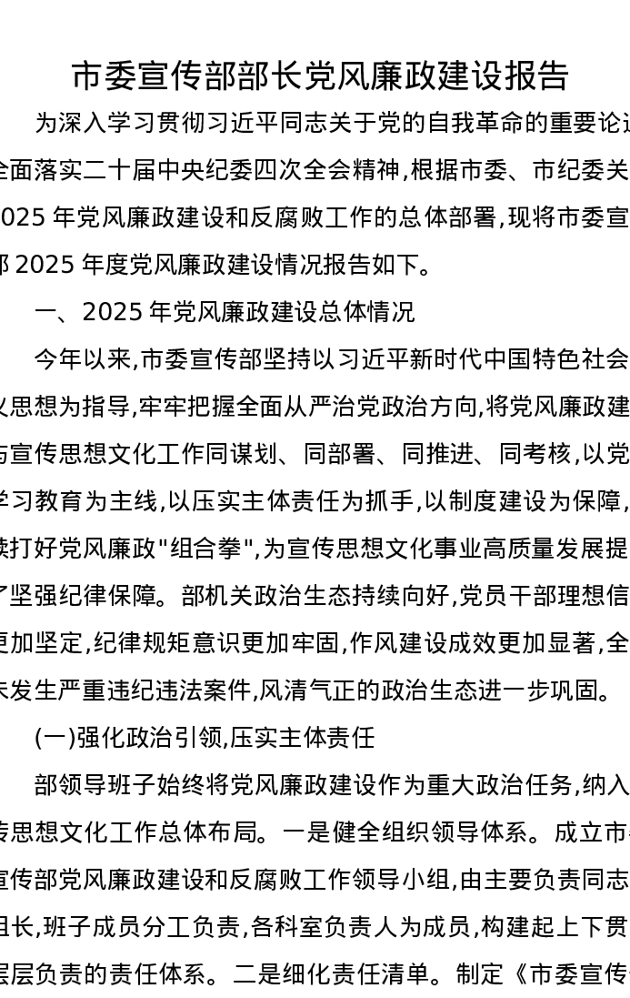 市委宣传部部长党风廉政建设报告