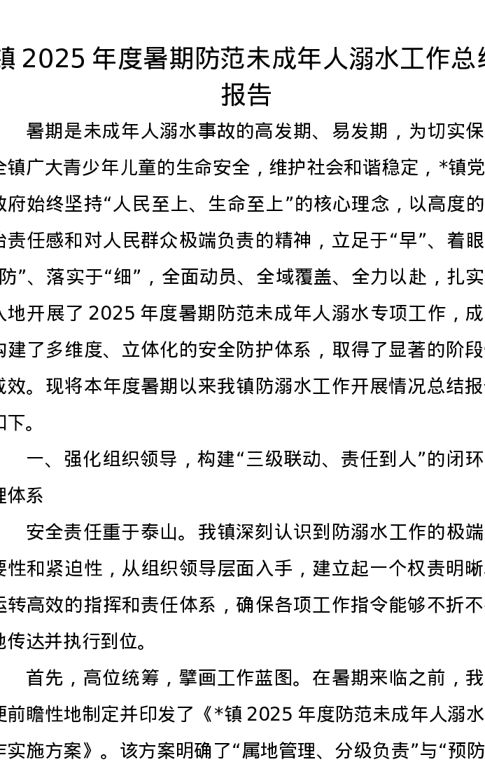 镇2025年度暑期防范未成年人溺水工作总结报告