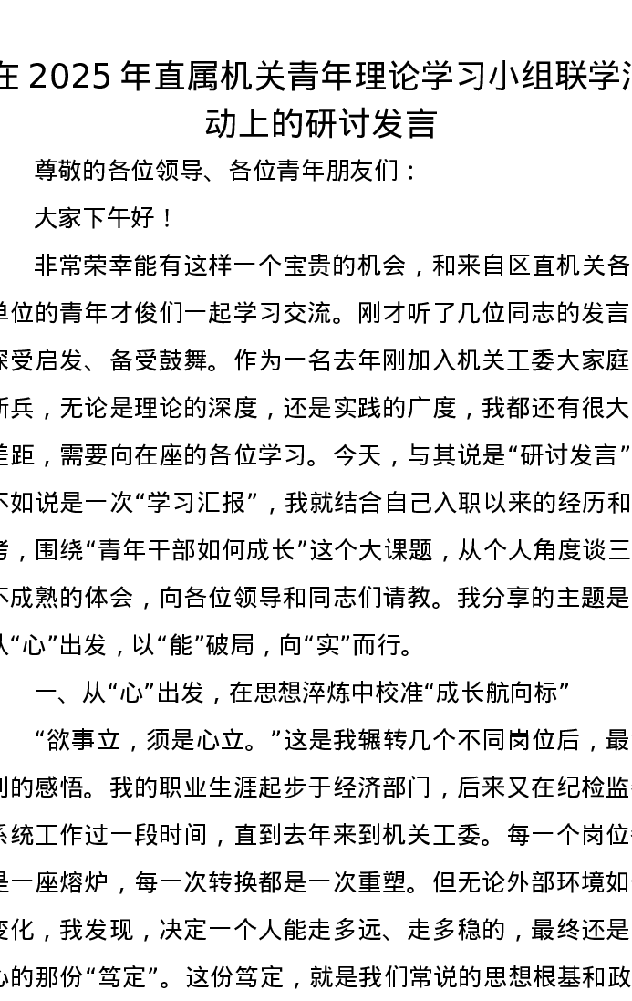 在2025年直属机关青年理论学习小组联学活动上的研讨发言