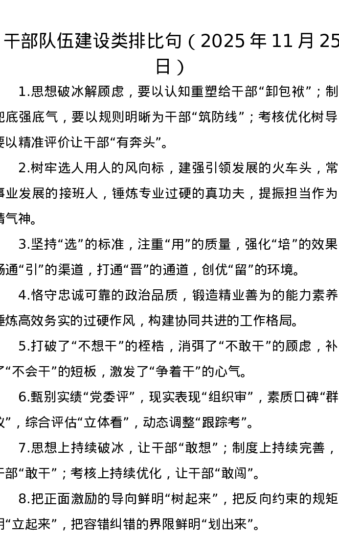 干部队伍建设类排比句(2025年11月25日)
