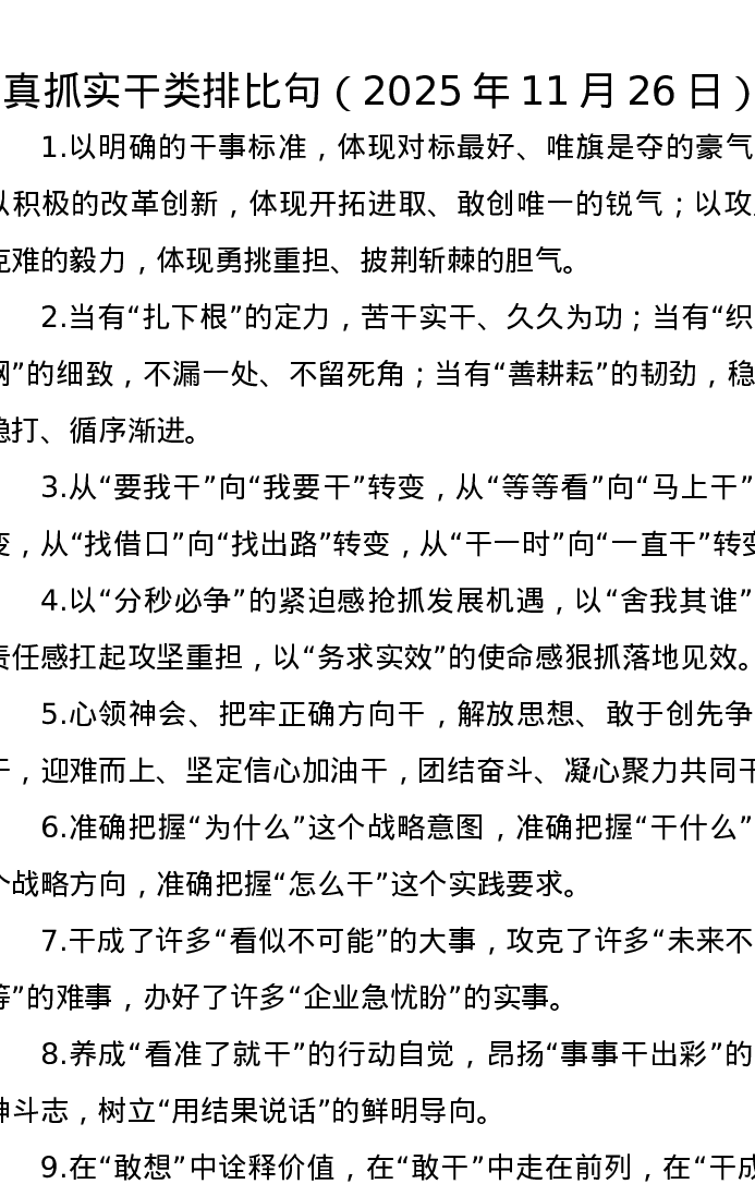 真抓实干类排比句(2025年11月26日)