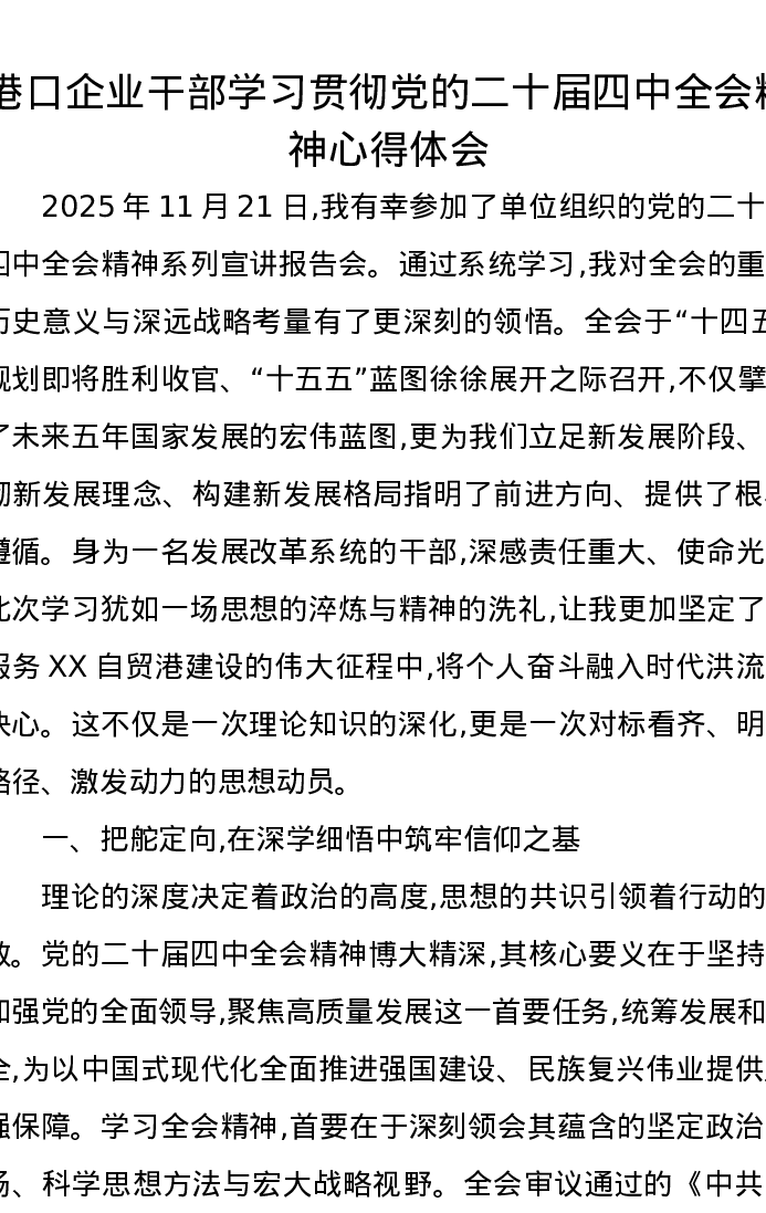 港口企业干部学习贯彻党的二十届四中全会精神心得体会
