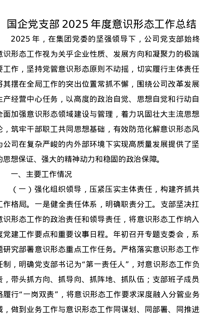 国企党支部2025年度意识形态工作总结