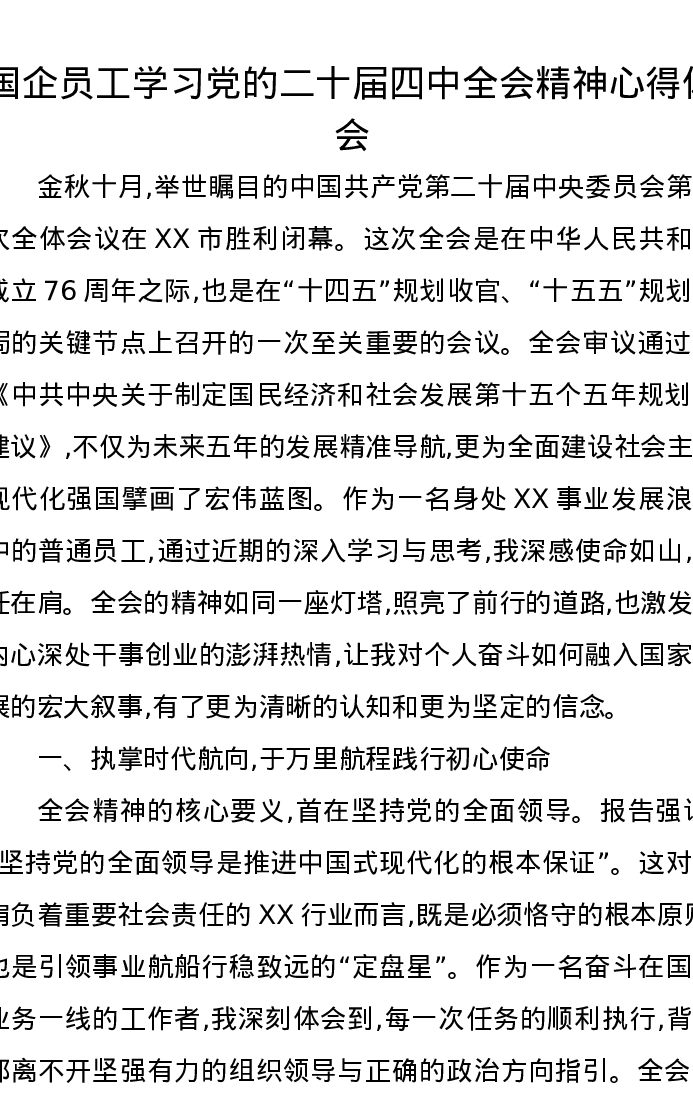 国企员工学习党的二十届四中全会精神心得体会
