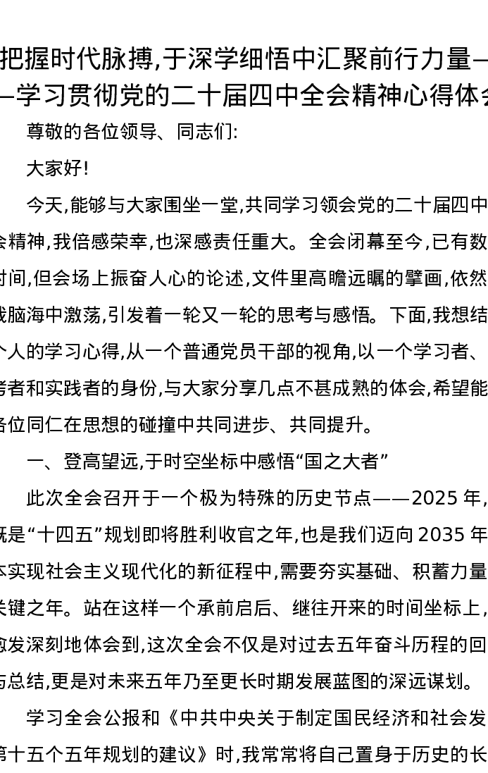 把握时代脉搏,于深学细悟中汇聚前行力量——学习贯彻党的二十届四中全会精神心得体会