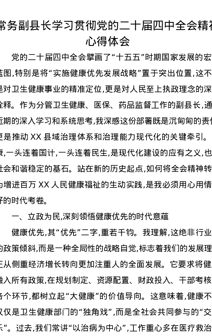 常务副县长学习贯彻党的二十届四中全会精神心得体会