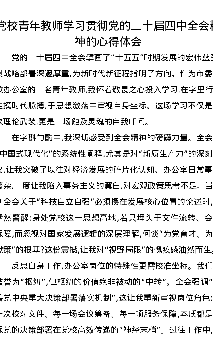 党校青年教师学习贯彻党的二十届四中全会精神的心得体会