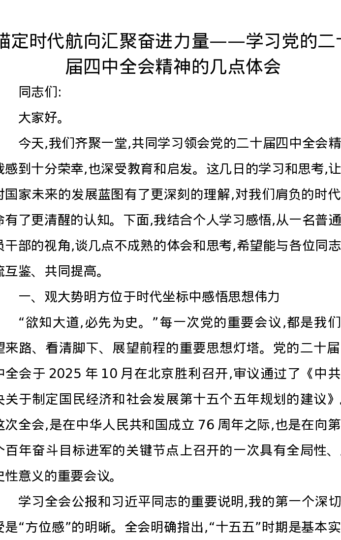 锚定时代航向汇聚奋进力量——学习党的二十届四中全会精神的几点体会