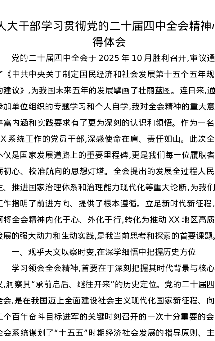 人大干部学习贯彻党的二十届四中全会精神心得体会