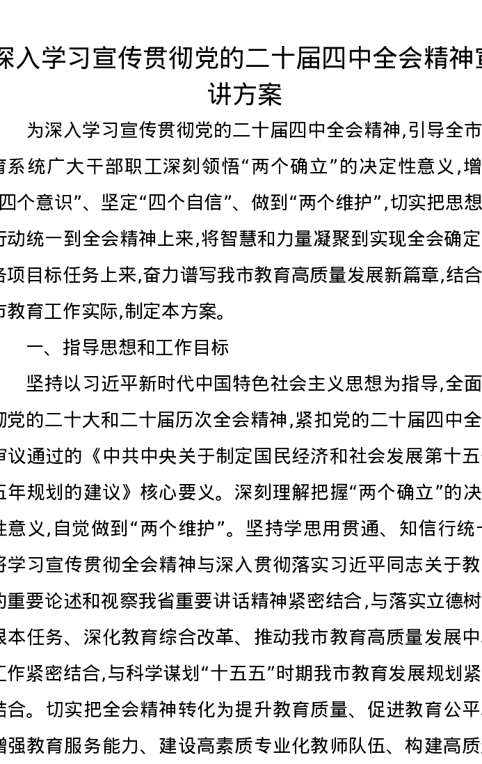 深入学习宣传贯彻党的二十届四中全会精神宣讲方案