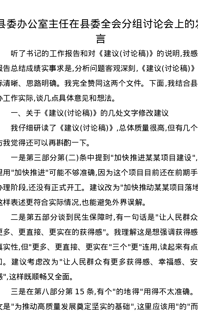县委办公室主任在县委二十届四中全会分组讨论会上的发言