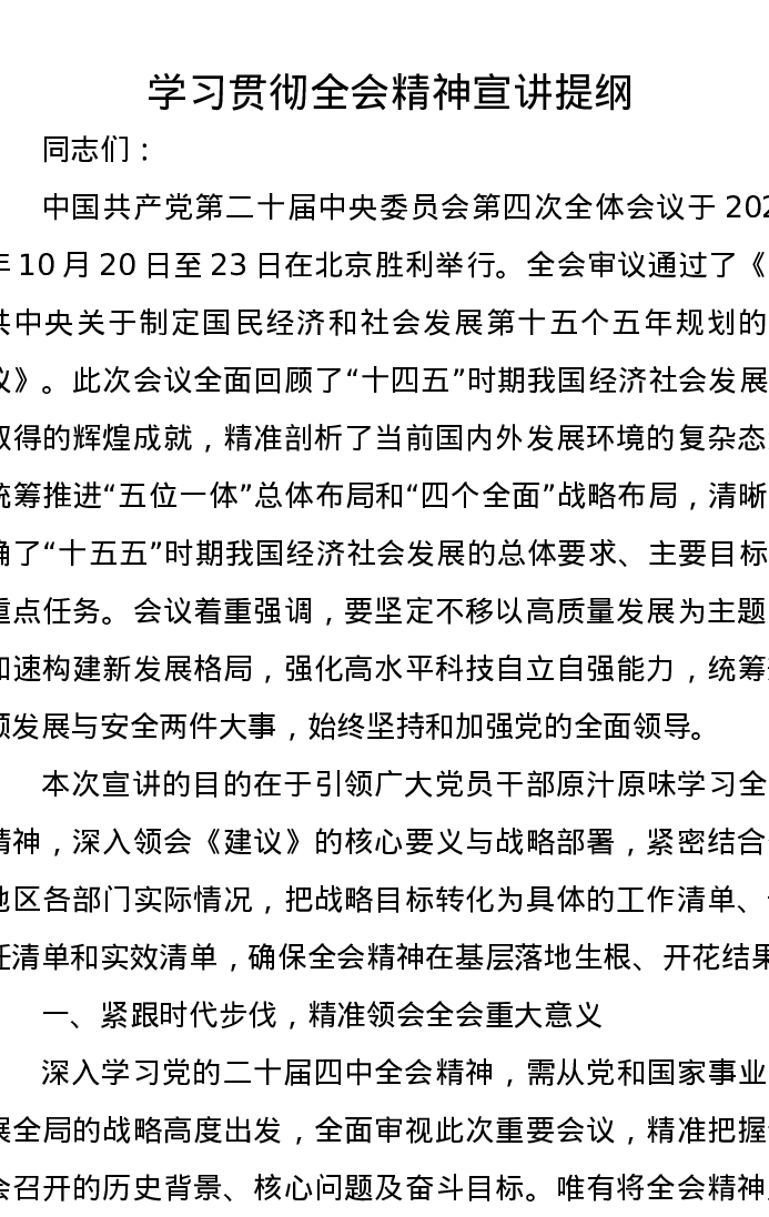 学习贯彻二十届四中全会精神宣讲讲稿提纲