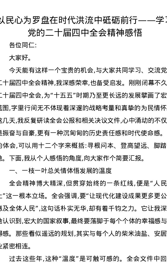 以民心为罗盘在时代洪流中砥砺前行——学习党的二十届四中全会精神感悟