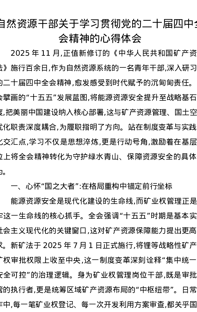 自然资源干部关于学习贯彻党的二十届四中全会精神的心得体会