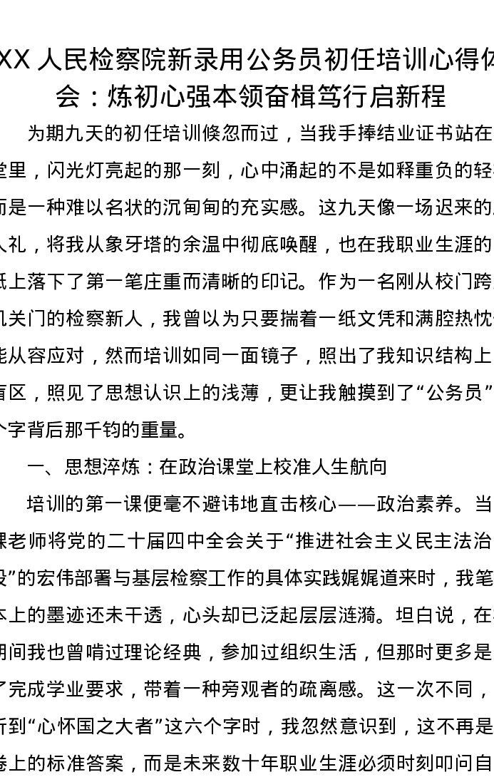 XX人民检察院新录用公务员初任培训心得体会:炼初心强本领奋楫笃行启新程