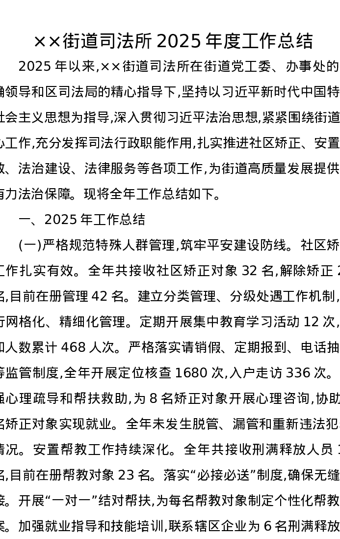 ××街道司法所2025年度工作总结