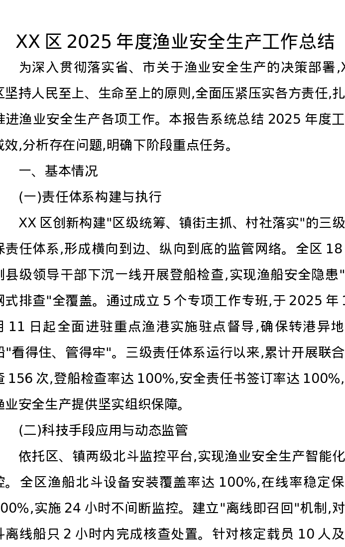 XX区2025年度渔业安全生产工作总结