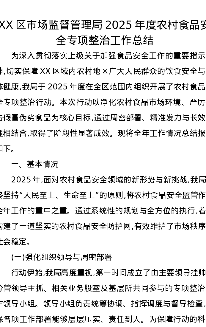 XX区市场监督管理局2025年度农村食品安全专项整治工作总结