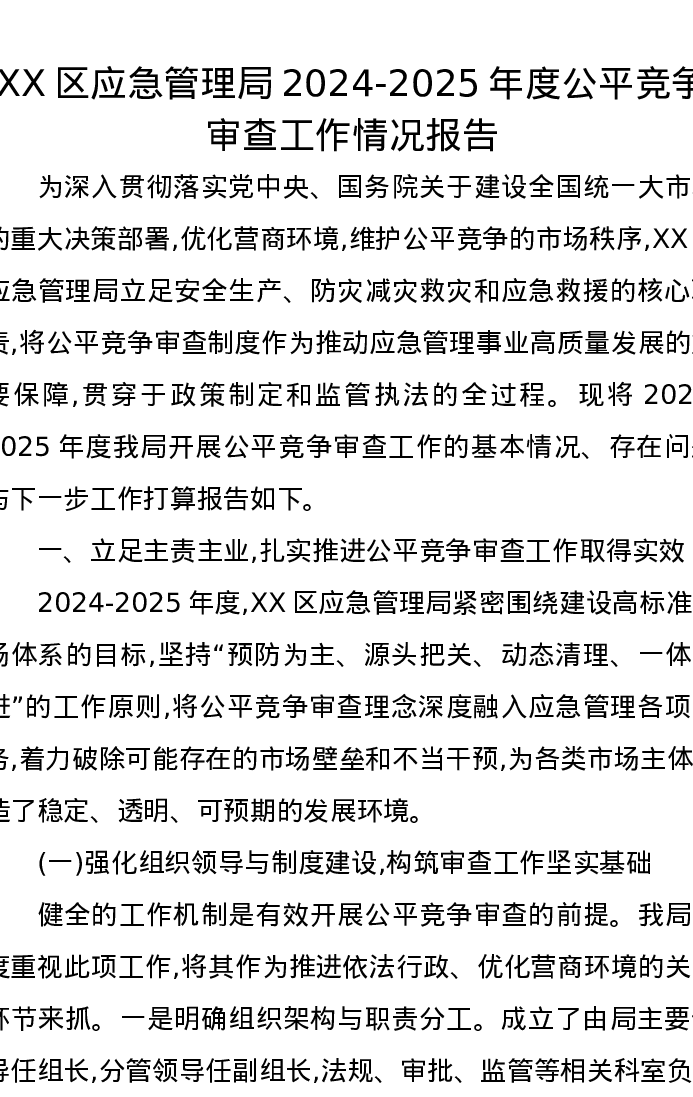 XX区应急管理局2024-2025年度公平竞争审查工作情况报告