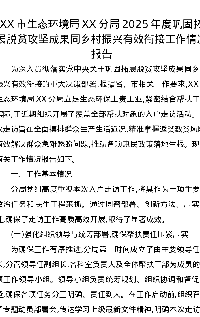 XX市生态环境局XX分局2025年度巩固拓展脱贫攻坚成果同乡村振兴有效衔接工作情况报告
