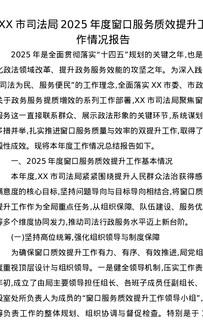 XX市司法局2025年度窗口服务质效提升工作情况报告