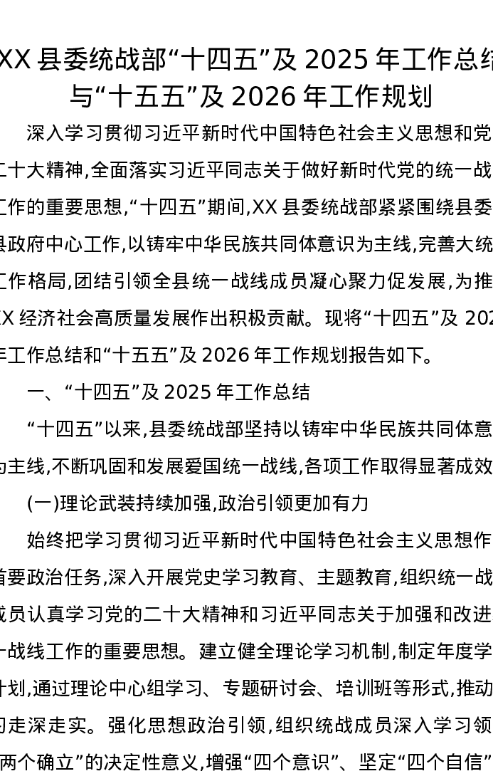 XX县委统战部“十四五”及2025年工作总结与“十五五”及2026年工作规划