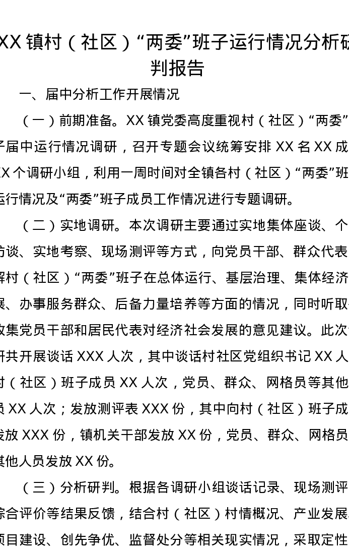 XX镇村(社区)“两委”班子运行情况分析研判报告