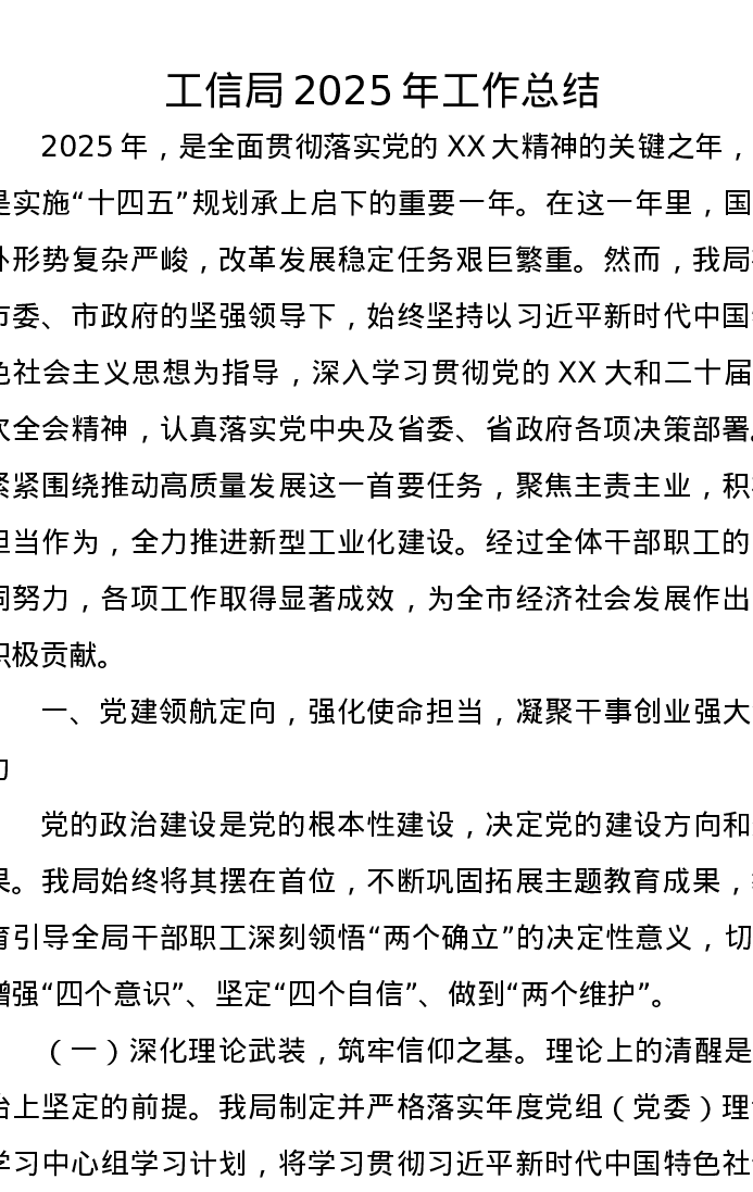 工信局2025年工作总结