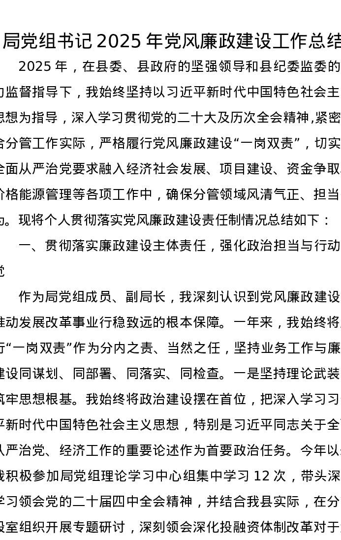 局党组书记2025年党风廉政建设工作总结