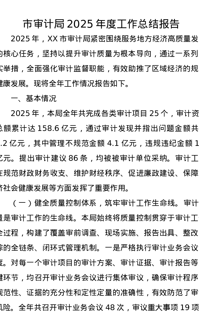 市审计局2025年度工作总结报告