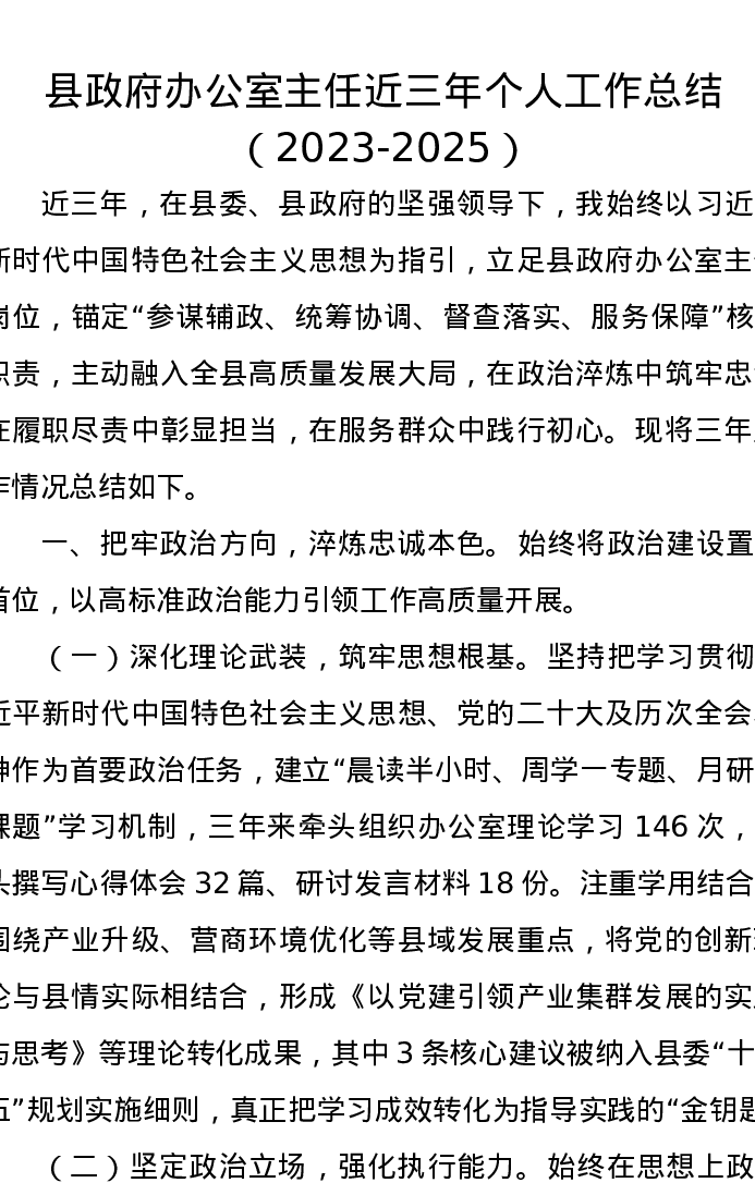 县政府办公室主任近三年个人工作总结(2023-2025)