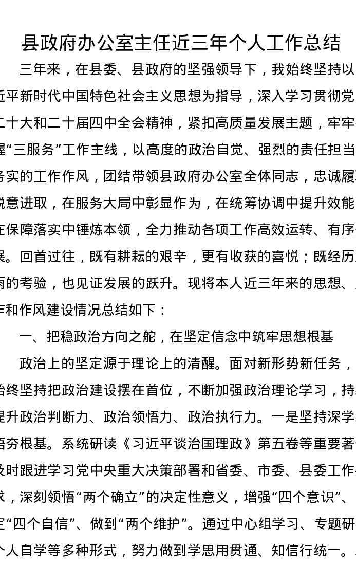 县政府办公室主任近三年个人工作总结