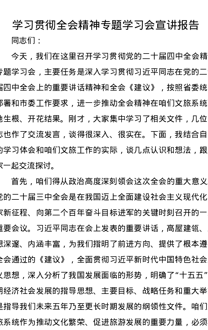学习贯彻二十届四中全会精神专题学习会宣讲报告
