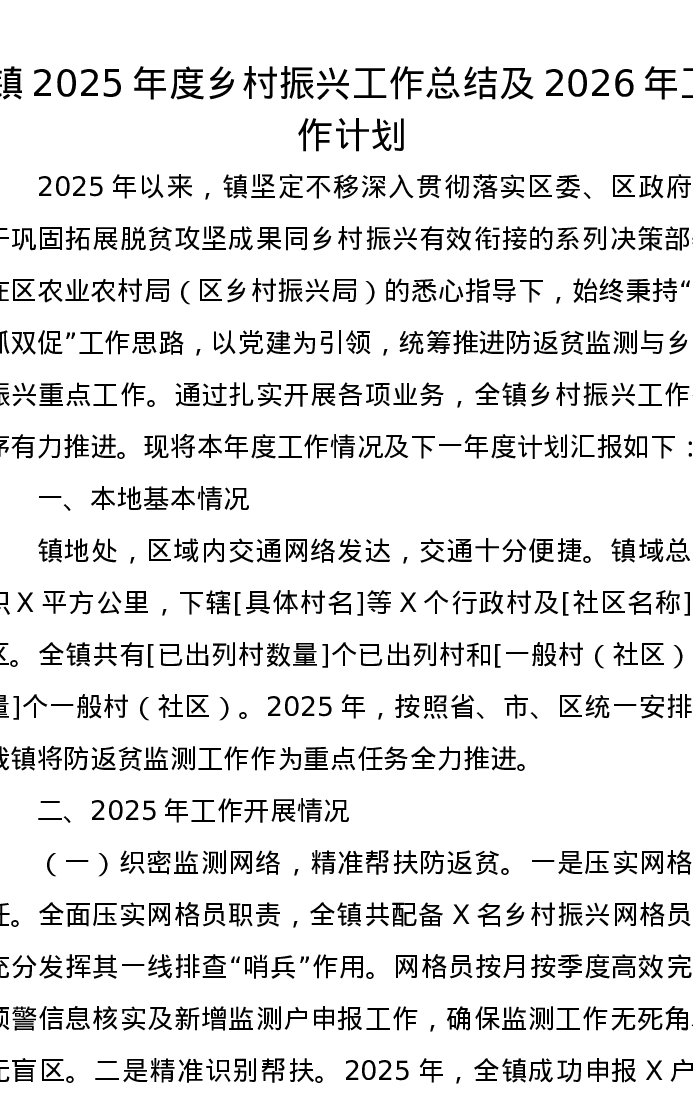 镇2025年度乡村振兴工作总结及2026年工作计划