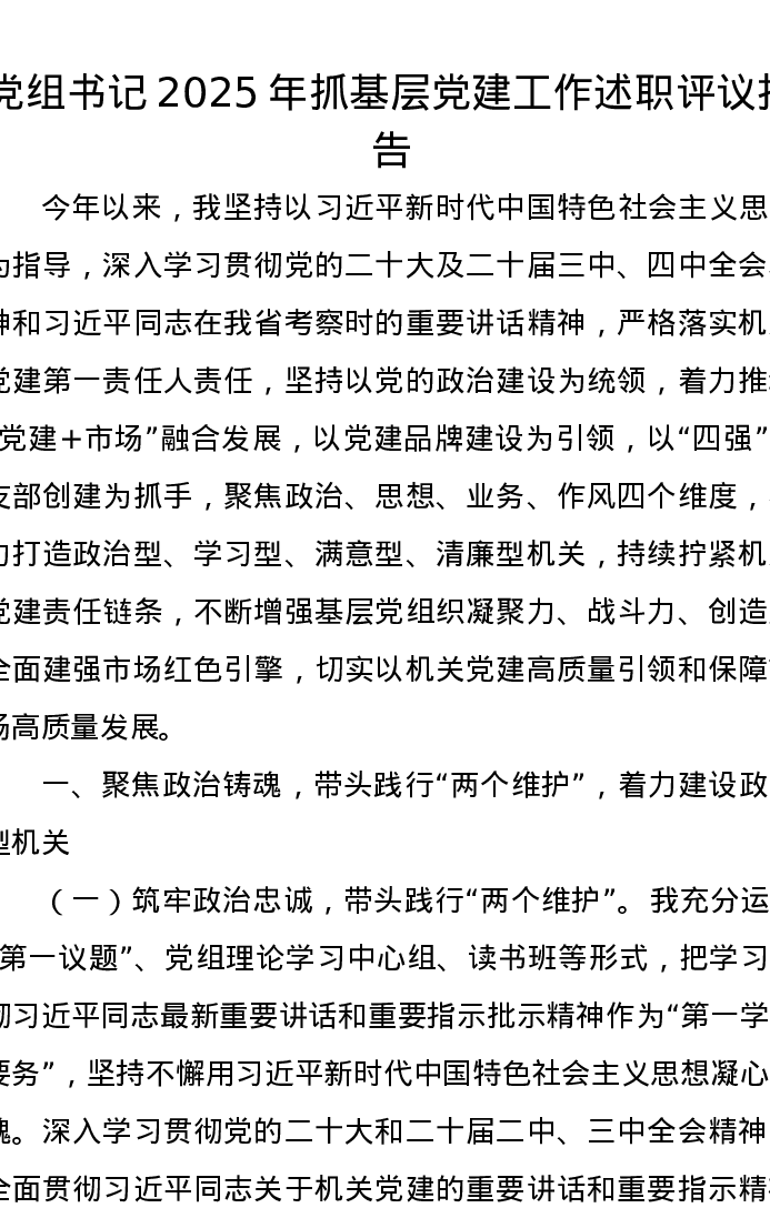党组书记2025年抓基层党建工作述职评议报告