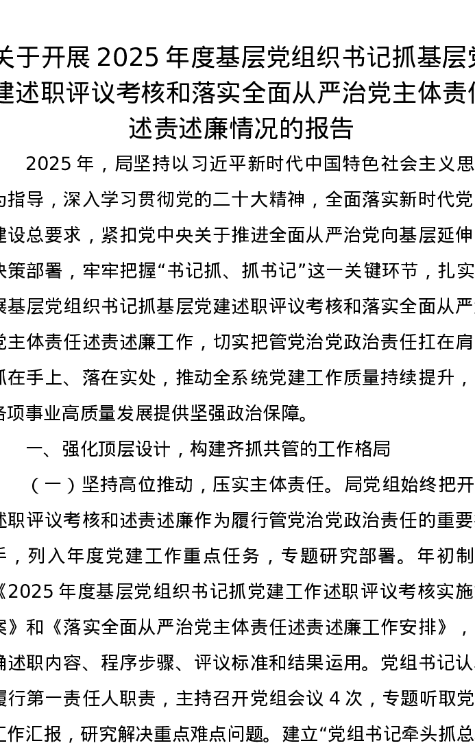 关于开展2025年度基层党组织书记抓基层党建述职评议考核和落实全面从严治党主体责任述责述廉情况的报告