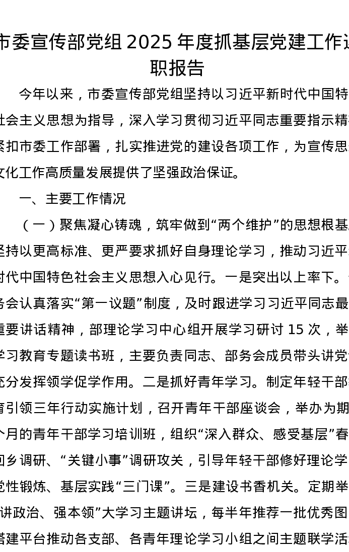 市委宣传部党组2025年度抓基层党建工作述职报告