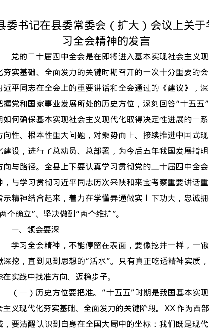 县委书记在县委常委会(扩大)会议上关于学习全会精神的发言