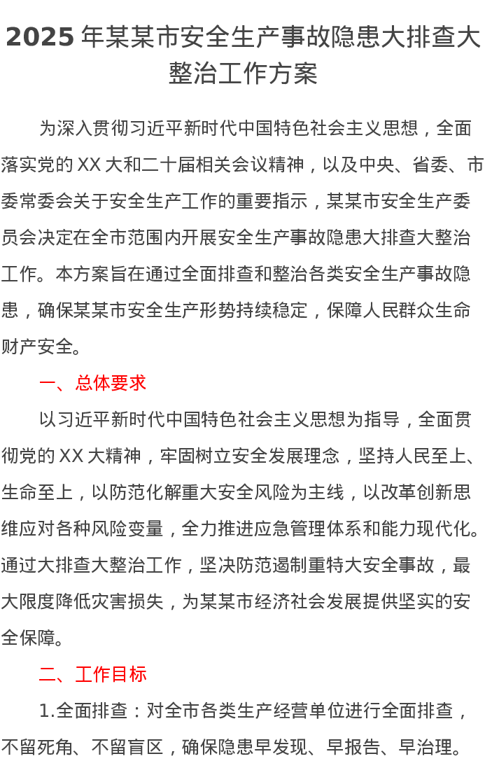 2025年某某市安全生产事故隐患大排查大整治工作方案