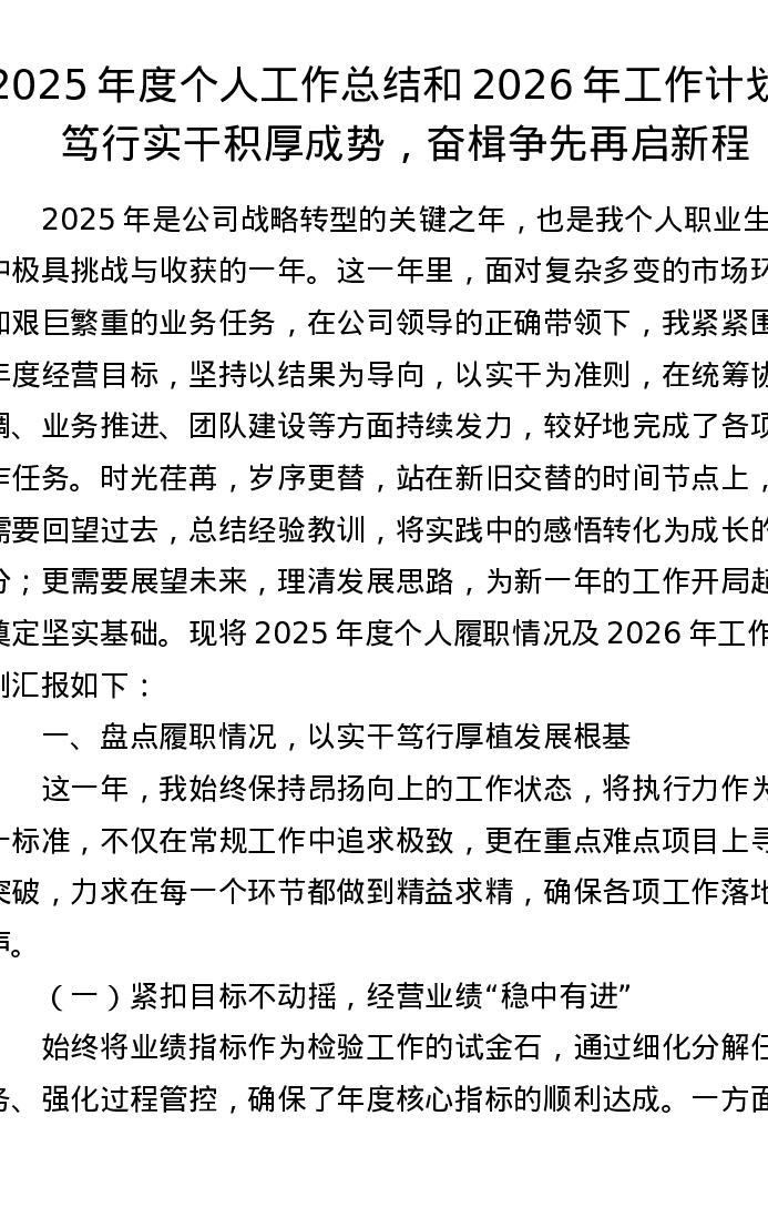 2025年度个人工作总结和2026年工作计划:笃行实干积厚成势,奋楫争先再启新程