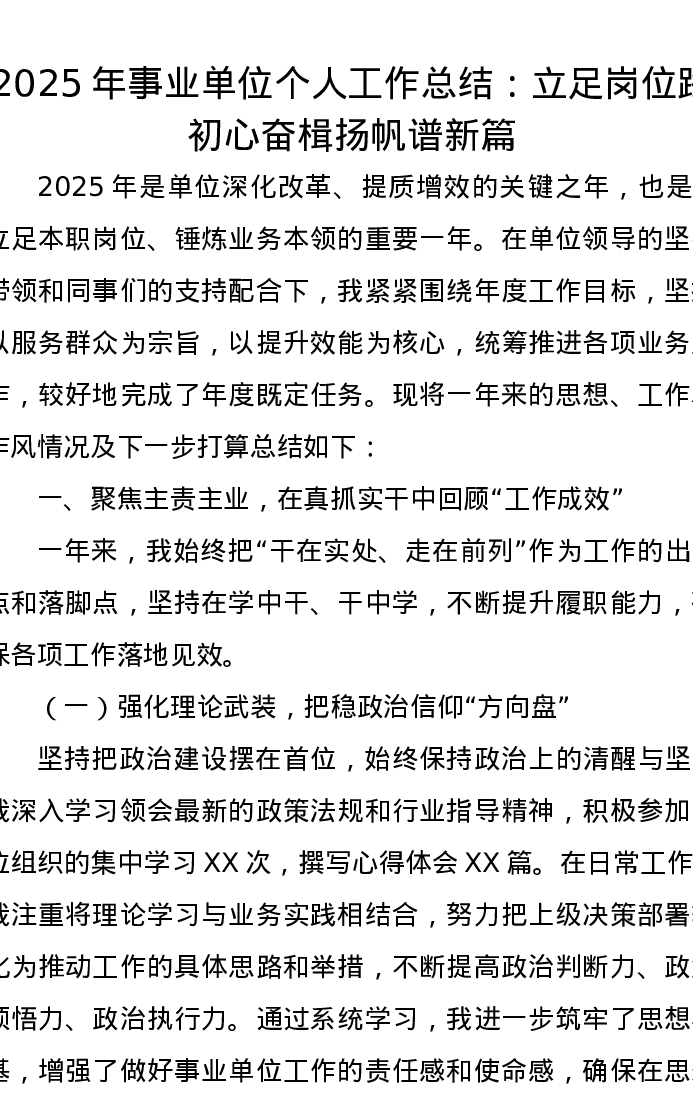 2025年事业单位个人工作总结:立足岗位践初心 奋楫扬帆谱新篇
