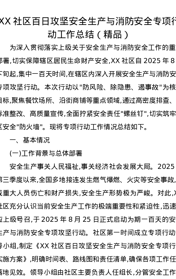 XX社区百日攻坚安全生产与消防安全专项行动工作总结